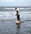 20 november zijn we weer op het strand geweest en geprobeerd haar de zee in te lokken. Als we zelf terug liepen om het aanstormende water te ontwijken, liep Hayley net zo hard mee terug. Dus dan maar de schoenen uit, de broekspijpen omhoog en zelf ook het water in brrrrrrrrrrr. Zonder aarzeling liep Hayley mee, we kunnen dus stellen dat ook deze Golden Retriever geen watervrees heeft. Ze vond het geweldig!!