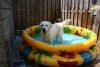 Vrijdag 7 juli. Lekker met Sam, de hond van de buren, in zijn zwembad spelen.